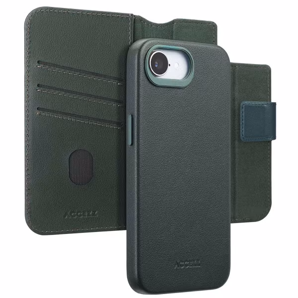 Dank dieser 2-in-1-Klapphülle aus Leder mit MagSafe von Accezz musst du dich nicht mehr zwischen einem Backcover und einer Klapphülle entscheiden. Das liegt daran, dass diese Hülle über eine abnehmbare Halterung verfügt, die du als Handyschale verwenden kannst, wenn du eine Zeit lang keine Lust auf die komplette Klapphülle hast. Das Etui ist aus echtem Nappaleder gefertigt und sorgt so für einen hochwertigen Look. Da die Rückseite über eine integrierte MagSafe-Funktion verfügt, kannst du problemlos MagSafe-Produkte verwenden. Wenn es Zeit ist, dein Smartphone aufzuladen, nimmst du die Rückseite aus der Bookcase, um dein MagSafe-Ladegerät an dein Telefon anzuklicken.