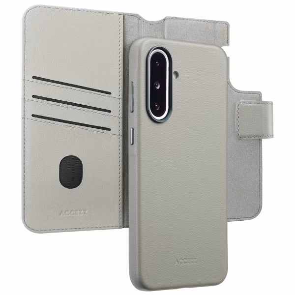 Dank dieser 2-in-1-Klapphülle aus Leder mit MagSafe von Accezz musst du dich nicht mehr zwischen einem Backcover und einer Klapphülle entscheiden. Das liegt daran, dass diese Hülle über eine abnehmbare Halterung verfügt, die du als Handyschale verwenden kannst, wenn du eine Zeit lang keine Lust auf die komplette Klapphülle hast. Das Etui ist aus echtem Nappaleder gefertigt und sorgt so für einen hochwertigen Look. Da die Rückseite über eine integrierte MagSafe-Funktion verfügt, kannst du problemlos MagSafe-Produkte verwenden. Wenn es Zeit ist, dein Smartphone aufzuladen, nimmst du die Rückseite aus der Bookcase, um dein MagSafe-Ladegerät an dein Telefon anzuklicken.