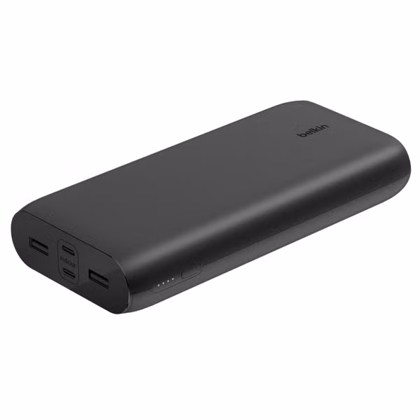 Mit der Belkin BoostCharge Powerbank bist du immer bereit, deine Geräte schnell und effizient aufzuladen. Dank der großen Kapazität von 26.000 mAh und vier Ladeanschlüssen kannst du mehrere Geräte gleichzeitig aufladen, egal wo du bist.