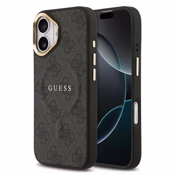 Ein Backcover versehen mit dem ikonischen Guess-4G-Logo und goldfarbenen Details.