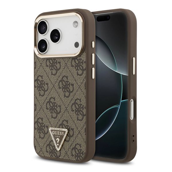 Guess Classic Triangle Logo Leather Back Cover mit MagSafe für das Apple iPhone 17 Pro - Braun