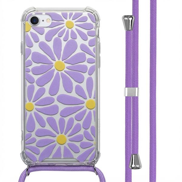 imoshion Design Hülle mit Band für das Apple iPhone SE (2022 / 2020) / 8 / 7 - Tropical Violet Flowers Connect