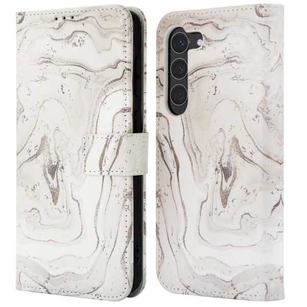 Du suchst eine praktische Hülle, die deinem Handy einen eleganten Look verleiht? Dann entscheide dich für die Design Klapphülle von imoshion! Die Klapphülle besteht aus hochwertigem Kunstleder und ist mit einem modernen Design bedruckt. Dadurch erhält dein Smartphone ein luxuriöses und trendiges Aussehen. Außerdem bietet die Hülle einen Rundumschutz gegen alltägliche Schäden wie Stürze oder Stöße. Die Klapphülle verfügt über 3 Kartenhalter und Platz für Geldscheine, damit du deine wichtigsten Karten immer zur Hand hast. Außerdem lässt sich die Hülle ganz einfach zu einem Standfuß zusammenklappen, was besonders praktisch ist, wenn du lange Gespräche führst oder dir ein Video oder ein Rezept ansiehst.