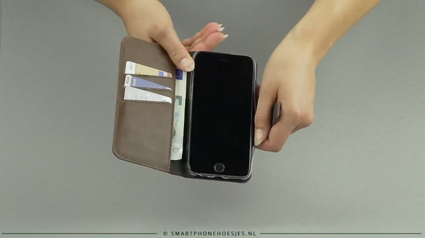 Auf der Innenseite der Hülle befinden sich drei Kartenhalter und ein Fach für Geldscheine. Auf diese Weise können Sie Ihre wichtigsten Karten und etwas Bargeld immer bequem mitnehmen, sodass Sie Ihre Brieftasche zu Hause lassen können. Da die Hülle außerdem über einen starken Magnetverschluss verfügt, sind Ihre Karten sicher, wenn die Hülle geschlossen ist.