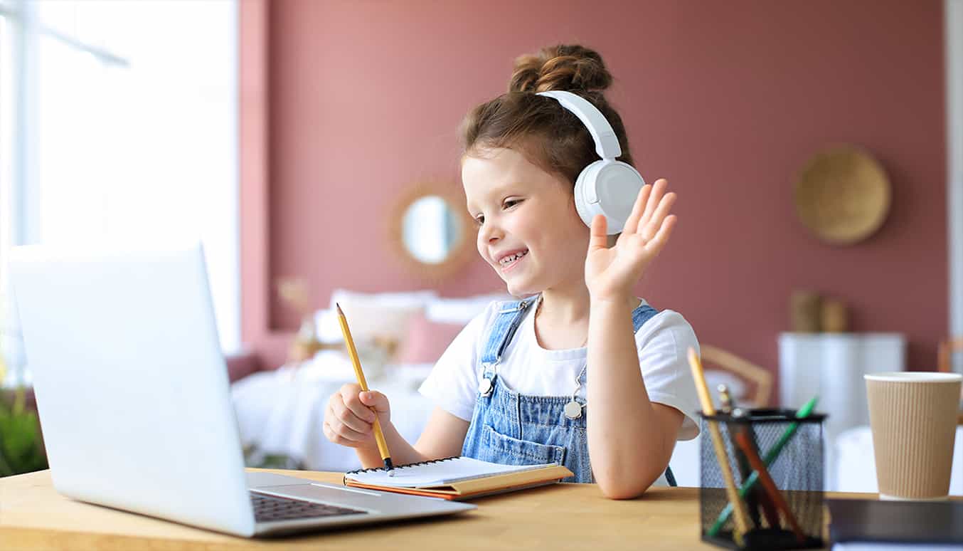 Das Mädchen trägt ihren kinderfreundlichen Kopfhörer, der eine Volumenbegrenzungsfunktion hat.Das Mädchen trägt ihren kinderfreundlichen Kopfhörer, der eine Volumenbegrenzungsfunktion hat.Das Mädchen trägt ihren kinderfreundlichen Kopfhörer, der eine Volumenbegrenzungsfunktion hat.