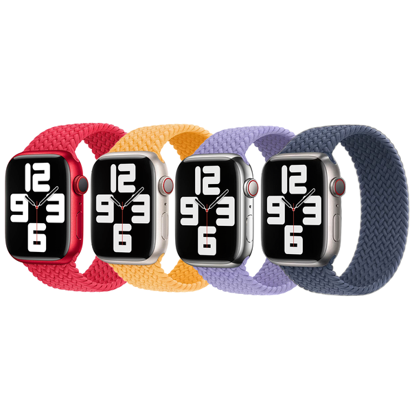 Apple 4 Pack Geflochtenes Solo Loop für Apple Watch | 38/40/41/42 mm - Größe 4 - (PRODUCT)RED / Maize / Lavender / Storm Blue