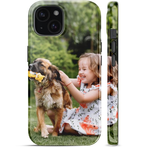 Eine selbst gestaltete Handyhülle mit MagSafe bietet doppelten Schutz mit einer flexiblen Silikon-Innenschicht und einer starken Polycarbonat-Außenschicht. Die Silikonschicht absorbiert Stöße, während die harte Außenschicht Kratzer und Dellen verhindert, sodass dein Handy schadenfrei bleibt. Diese Hülle schützt auch die Kamera-Linse auf der Rückseite und das Touchscreen, wenn das Display nach unten liegt, und alle Anschlüsse bleiben zugänglich.