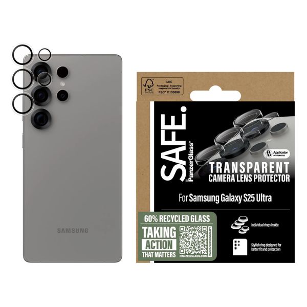 Der SAFE Kameraschutz von PanzerGlass verhindert Schäden an der Kamera deines Telefons. Der Schutz besteht aus Glas und hat einen Titanrahmen, wodurch deine Kamera optimal vor Stürzen und Stößen geschützt ist. Außerdem ist der Rahmen mit Glitzer verziert, was für ein einzigartiges Aussehen sorgt.