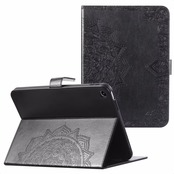 Die Hülle ist maßgeschneidert für dein Tablet und passt perfekt zum Gerät. In der Hülle sind alle Aussparungen und Tasten integriert. So sind die Anschlüsse vollständig zugänglich und alle Tasten einfach zu bedienen. Die robuste Hülle ist aus weichem Kunstleder gefertigt und hat einen eleganten Mandala-Druck.