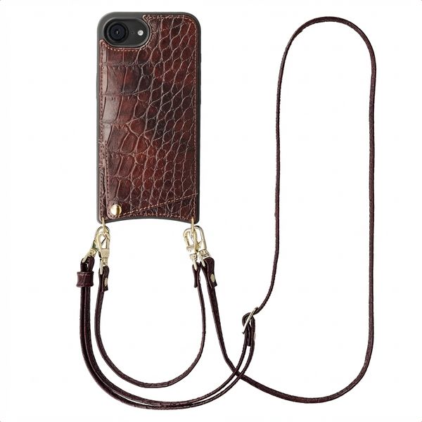 Selencia Nova Croco HandyHülle mit Kordel und Kartenhalter für das Apple iPhone 17e / 16e - Burgundy