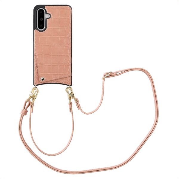 Selencia Nova Croco HandyHülle mit Kordel und Kartenhalter für das Samsung Galaxy A36 / A56 - Old Pink