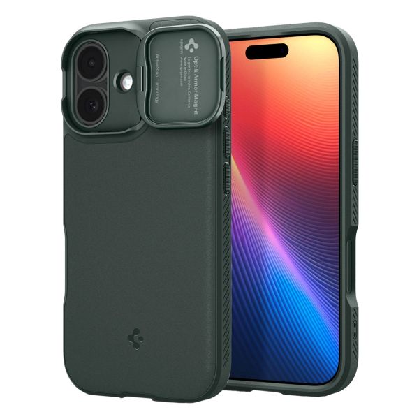 Schütze dein Handy mit dieser Optik Armor MagSafe von Spigen! Die Hülle ist aus stabilem Kunststoff gefertigt und sieht stilvoll aus. Zudem ist die Hülle mit stoßdämpfenden Silikonrändern ausgestattet. Außerdem verfügt die Hülle über einen Schiebeverschluss als Kameraabdeckung, der die Kamera zusätzlich schützt und dafür sorgt, dass die Kamera abgedeckt ist, um zusätzlich die Privatsphäre zu wahren. Mithilfe der integrierten MagSafe-Funktion kannst du problemlos MagSafe-Produkte verwenden.