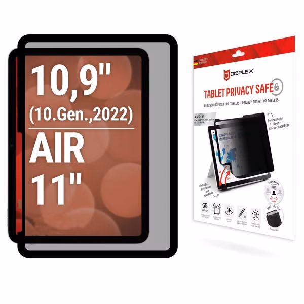 Displex Privacy Displayschutzfolie für das Apple iPad 11 (2025) 11 Zoll A16 / iPad 10 (2022) 10.9 Zoll