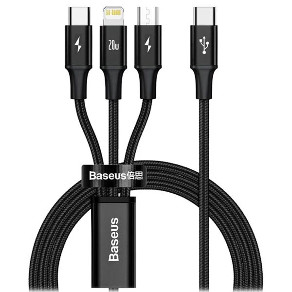 Baseus Rapid Series 3-in-1-Schnellladekabel – USB-C zu USB-C / Lightning / Micro-USB – 20 Watt – 1,5 Meter – Schwarz