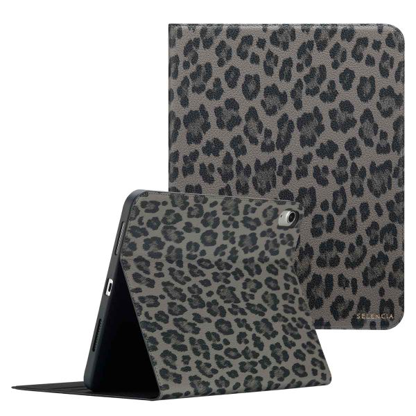 Selencia Sabi Klapphülle mit Leopardenmuster für das Apple iPad 11 (2025) 11 Zoll A16 / iPad 10 (2022) 10.9 Zoll - Midnight Black