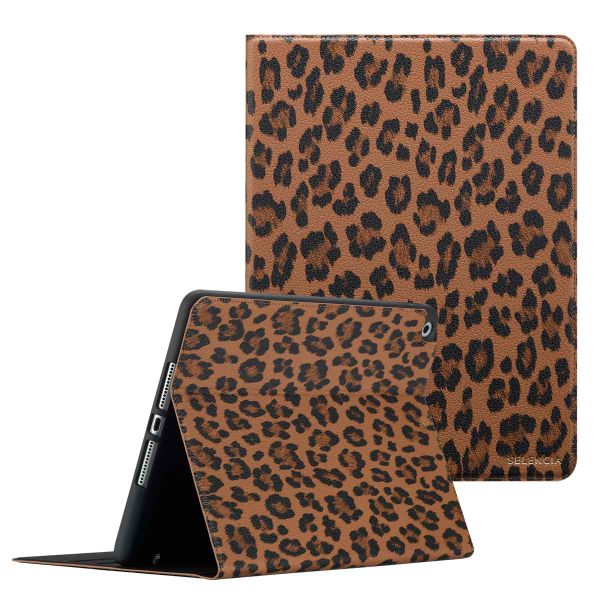 Selencia Sabi Klapphülle mit Leopardenmuster für das Apple iPad 9 (2021) 10.2 Zoll / iPad 8 (2020) 10.2 Zoll / iPad 7 (2019) 10.2 Zoll - Mocha Brown