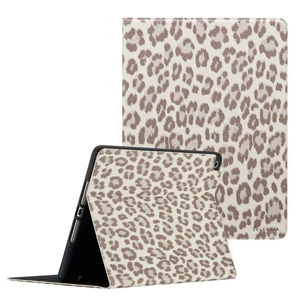 Selencia Sabi Klapphülle mit Leopardenmuster für das Apple iPad 9 (2021) 10.2 Zoll / iPad 8 (2020) 10.2 Zoll / iPad 7 (2019) 10.2 Zoll - Soft Ivory