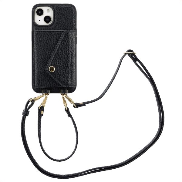 Selencia Sera HandyHülle mit Kordel und Umschlag-Kartenhalter für das Apple iPhone 14 / 13 - Schwarz