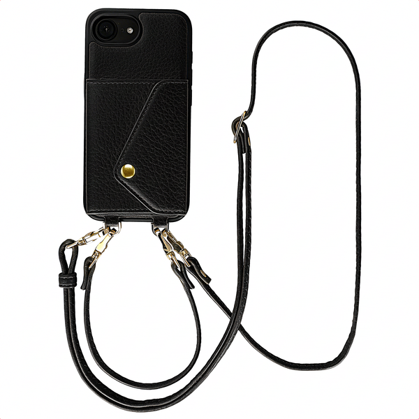 Selencia Sera HandyHülle mit Kordel und Umschlag-Kartenhalter für das Apple iPhone 17e / 16e - Schwarz