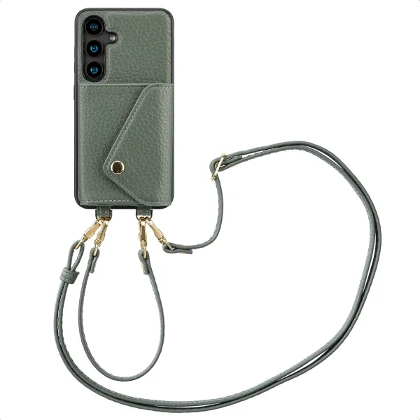 Selencia Sera HandyHülle mit Kordel und Umschlag-Kartenhalter für das Samsung Galaxy S24 - Sage Green