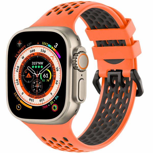 Verleihe deiner Apple Watch mit dem Silikon-Sportarmband von imoshion einen sportlichen Look! Das Armband besteht aus hochwertigem Silikonmaterial. Das zweifarbige Design verleiht deiner Apple Watch ein einzigartiges Aussehen. Dank des wasser- und schweißresistenten Materials ist das Armband ideal zum Sport oder Schwimmen. Auch fühlt sich das weiche und flexible Material angenehm auf deiner Haut an. Darüber hinaus ist das Uhrenarmband mit einer praktischen Schnalle ausgestattet, so dass du das Armband leicht an deinen Handgelenkumfang anpassen kannst.