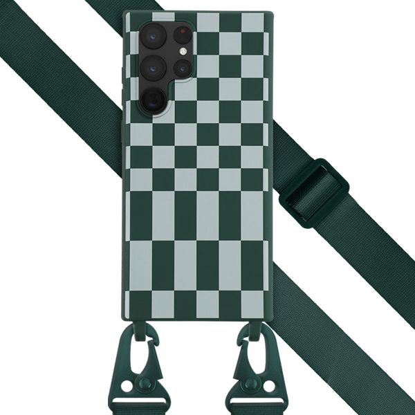 Selencia SilikonHülle design mit abnehmbarem Band für das Samsung Galaxy S22 Ultra - Irregular Check Green