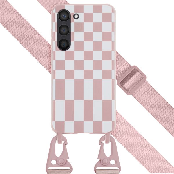 Selencia SilikonHülle design mit abnehmbarem Band für das Samsung Galaxy S23 - Irregular Check Sand Pink