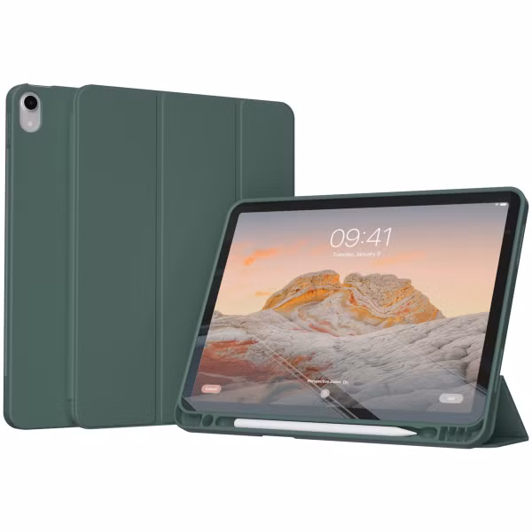 Accezz Smarte Klapphülle aus Silikon für das Apple iPad 11 (2025) 11 Zoll A16 / iPad 10 (2022) 10.9 Zoll - Dunkelgrün