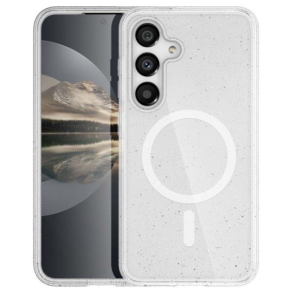 Verleihe deinem Handy einen glitzernden Look mit dem Glitzer Back Cover mit MagSafe von imoshion! Die Hülle besteht aus einem zweischichtigen Design aus Kunststoff und stoßdämpfendem Silikon. Zudem verfügt das Back Cover über erhöhte Ränder, die einen zusätzlichen Schutz für die Kamera und das Display deines Handys bieten. Außerdem hat das Back Cover ein transparentes Design mit fein eingearbeitetem Glitzer, der deinem Handy einen funkelnden Look verleiht. Mithilfe der integrierten MagSafe-Funktion kannst du problemlos MagSafe-Produkte verwenden.