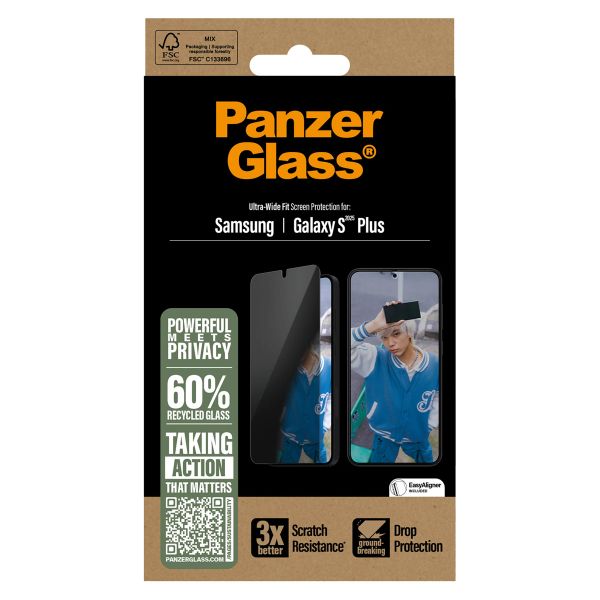 PanzerGlass Ultra Wide Fit Antibakterieller Screen Protector mit Sichtschutz inkl. Applikator für das Samsung Galaxy S25 Plus