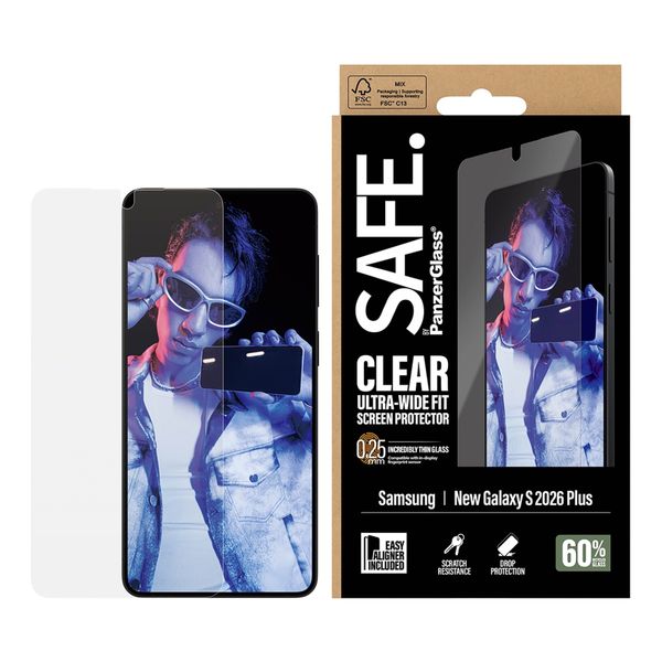 Der SAFE Ultra-Wide Fit Screenprotector sorgt dafür, dass das Display deines Smartphones nicht beschädigt wird. Das Schutzglas besteht aus robustem, gehärtetem Glas, sodass sich die Oberfläche genauso anfühlt wie das Smartphone selbst. Die Schutzfolie deckt die gesamte Vorderseite deines Geräts ab.