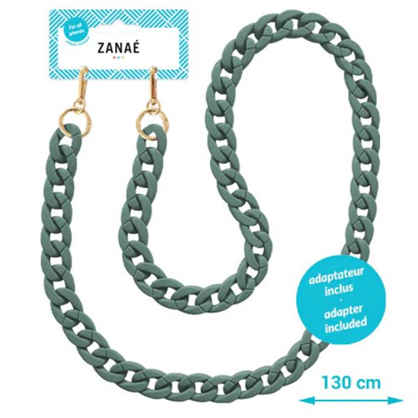 Verwandele dein Handy in einen echten Blickfang dank des universellen Telefonbandes von Zanaé! Die großen Kettenglieder des Bandes verleihen deinem Handy einen modischen Look, mit dem du dein Outfit abrunden kannst. Außerdem musst du dir dank des Bandes keine Sorgen mehr über den Verlust deines Handys machen und hast es immer in Reichweite. Das Band hat eine Länge von 130 cm, sodass du immer noch genügend Bewegungsfreiheit hast, dein Handy zu benutzen, während es am Band befestigt ist. Zudem lässt sich das Band mit allen Hüllen mit einer geschlossenen Unterseite universal verwenden.